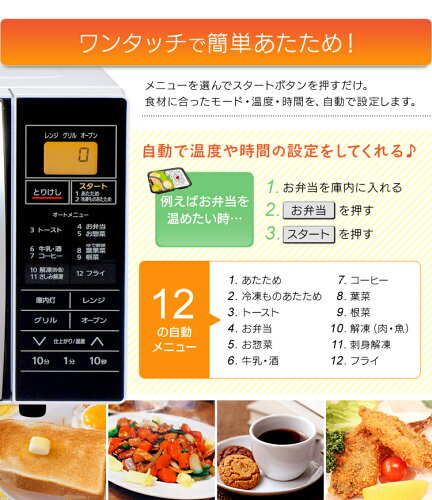 【レンジ機能】12のメニューを選んでスタートボタンを押すだけで温度や時間を自動で設定。