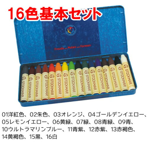 シュトックマー/STOCKMAR シュトックマー 蜜蝋クレヨン 16色 赤ちゃんがなめても安全なクレヨン 天然のみつろうで作られた最高品質のクレヨン。